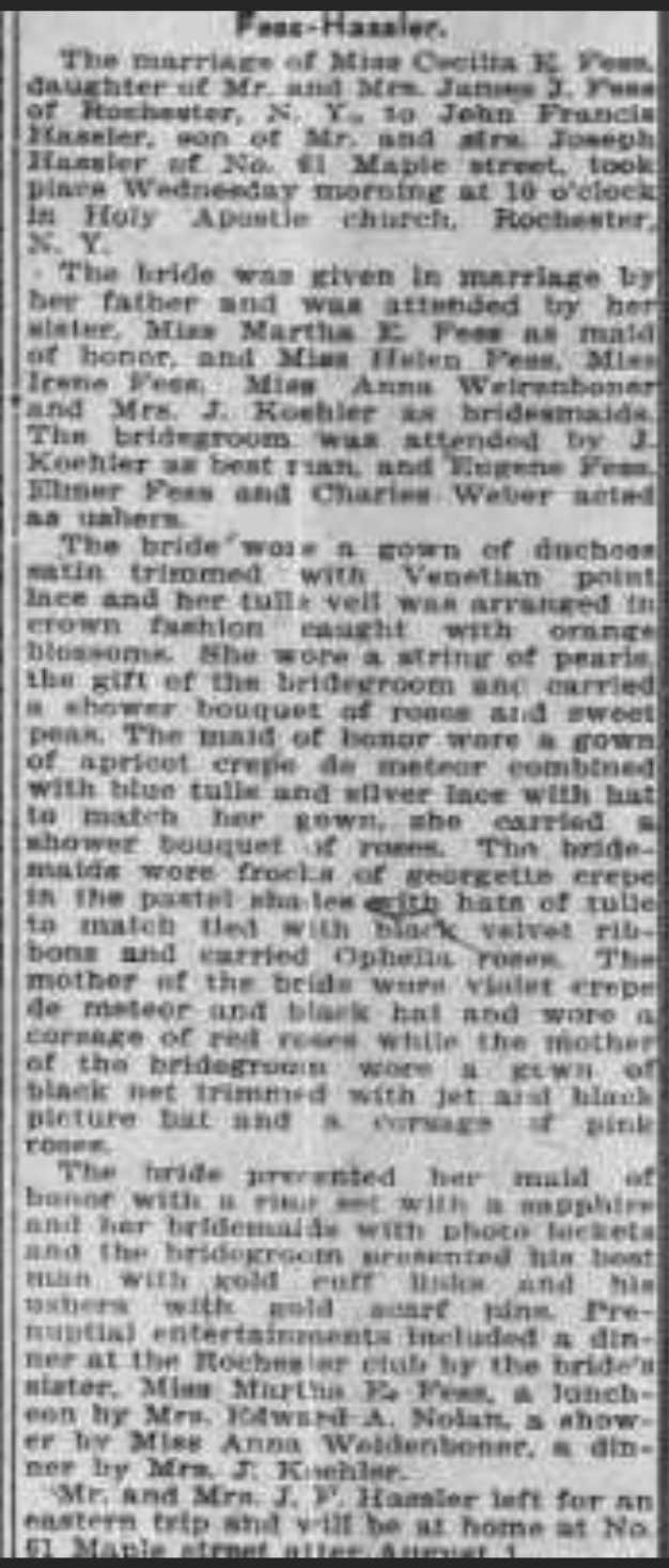 FESS-HASSLER WEDDING ABNNOUNCEMENT, 1919