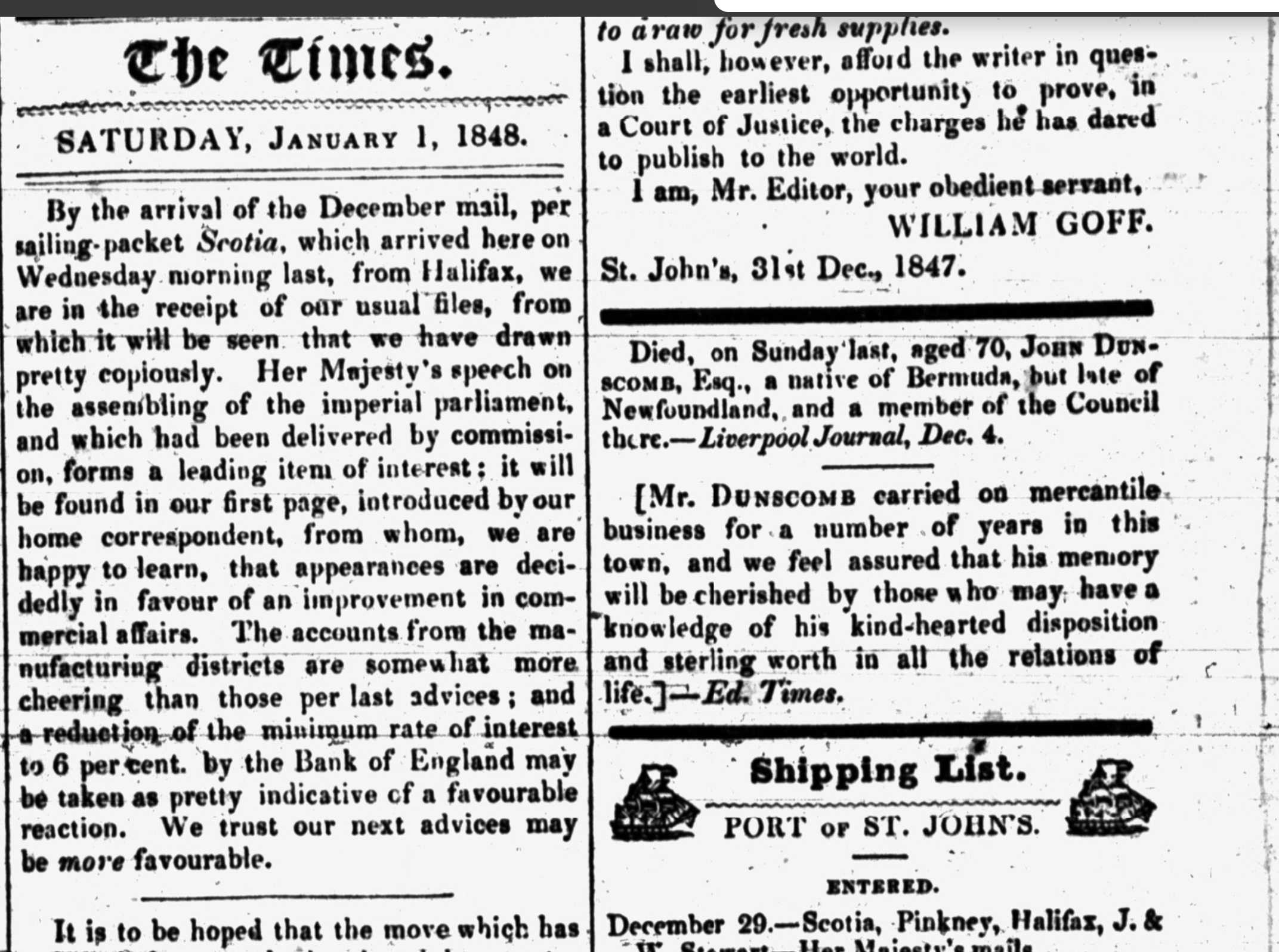 THE TIMES & GENERAL COMMERCIAL GAZETTE (NEWFOUNDLAND), JANUARY 1, 1848