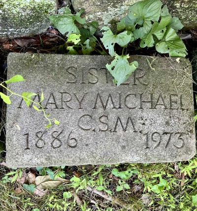 GRAVE MARKER OF SR. MARY MICHAEL, ST. MARY'S CNVENT CEMETERY, PEEKSKILL, NEW YORK (removed from grave)