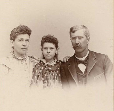 MARY (MOYER) HUBBELL, DAUGHTER JESSIE, AND HUSBAND PARIS HUBBELL