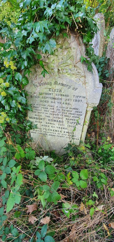 GRAVE OF ELIZA (MANWARING) TIFFIN, BROCKLEY AND LADYWELL CEMETERY, LONDON, ENGLAND