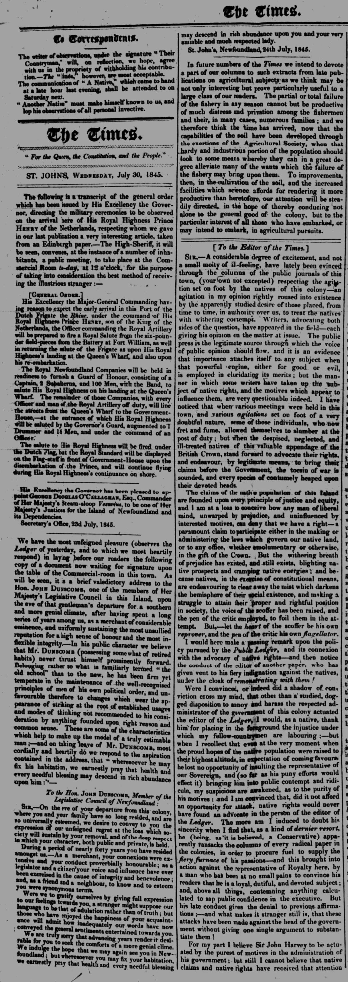 THE TIMES & GENERAL COMMERCIAL GAZETTE (NEWFOUNDLAND), JULY 30, 1845
