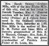 OBITUARY OF SARAH OAKLEY (GRAHAM) MILLS, 1933