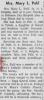OBITUARY OF MARY (MOTT) LOW, 1922